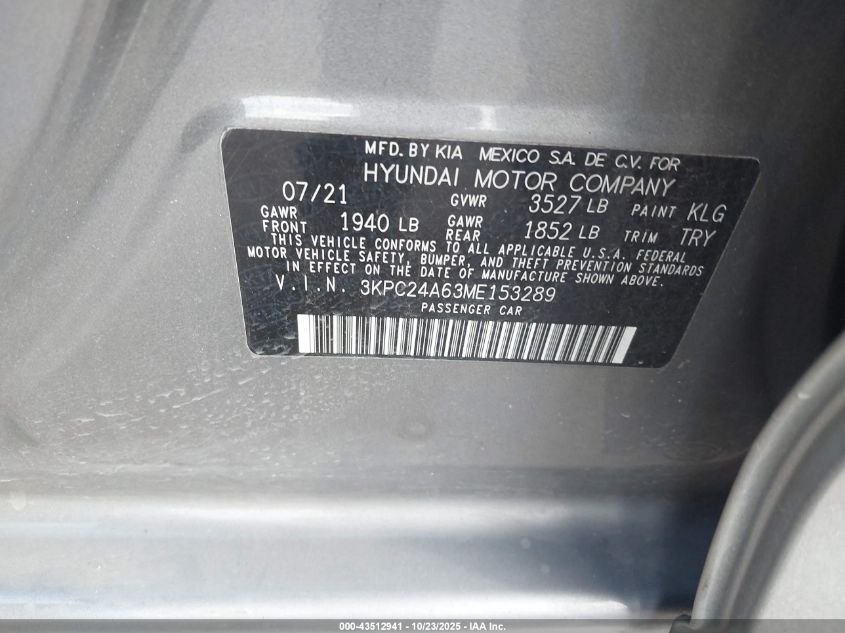 2021 HYUNDAI ACCENT - 3KPC24A63ME153289, колір - Сірий, 1.6, Бензин, Передній привід із США