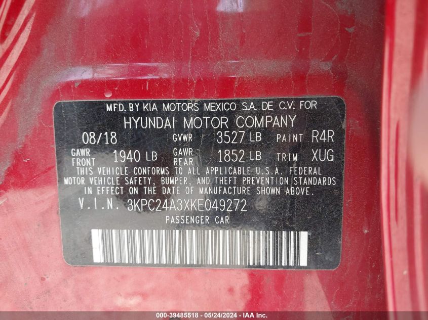 2019 HYUNDAI ACCENT - 3KPC24A3XKE049272, колір - Червоний, 1.6, Бензин, Передній привід із США