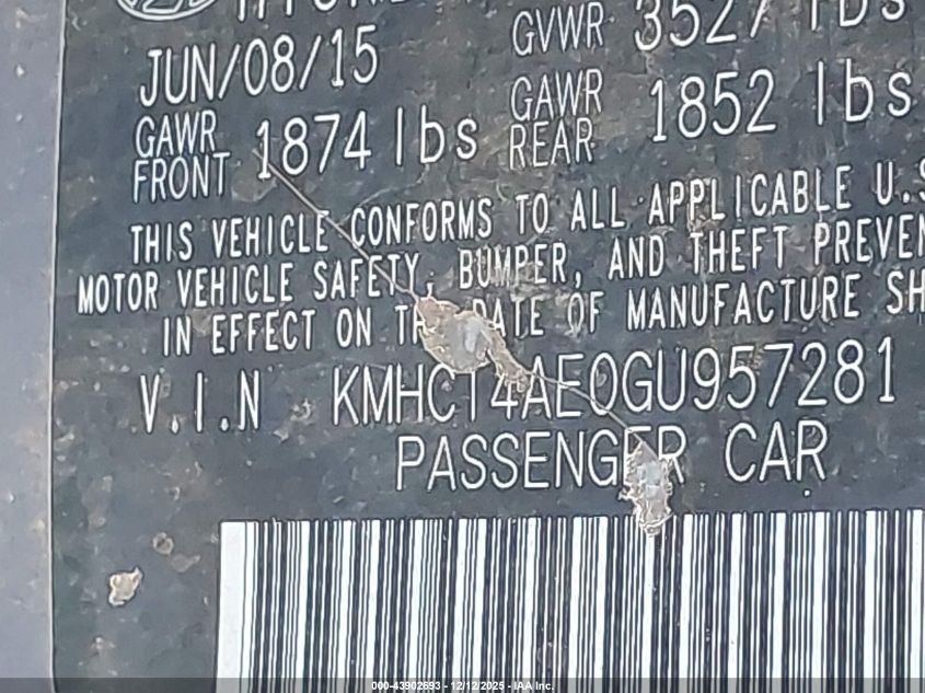 Колір СірийЦиліндри 4Привід Передній привідVIN KMHCT4AE0GU957281Стан СтаціонарноУшкодження По всьому авто