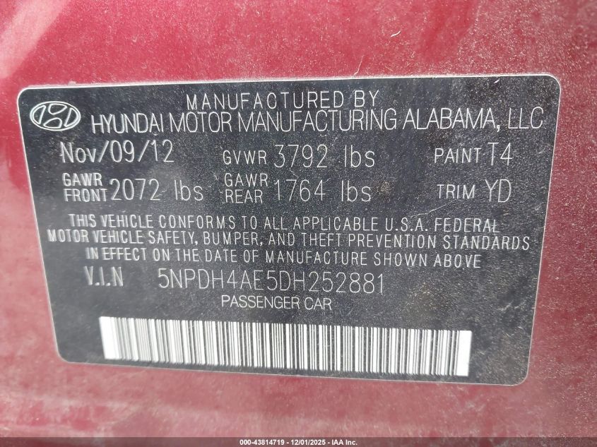 2013 HYUNDAI ELANTRA - 5NPDH4AE5DH252881, колір - Червоний, 1.8, Бензин, Передній привід із США