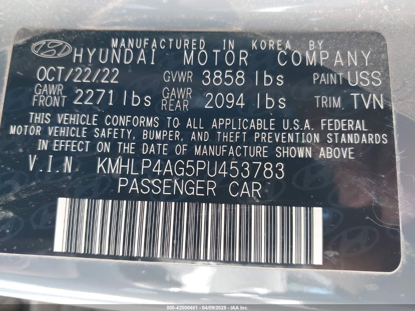 2023 HYUNDAI ELANTRA - KMHLP4AG5PU453783, колір - Сірий, 2.0, Бензин, Передній привід із США