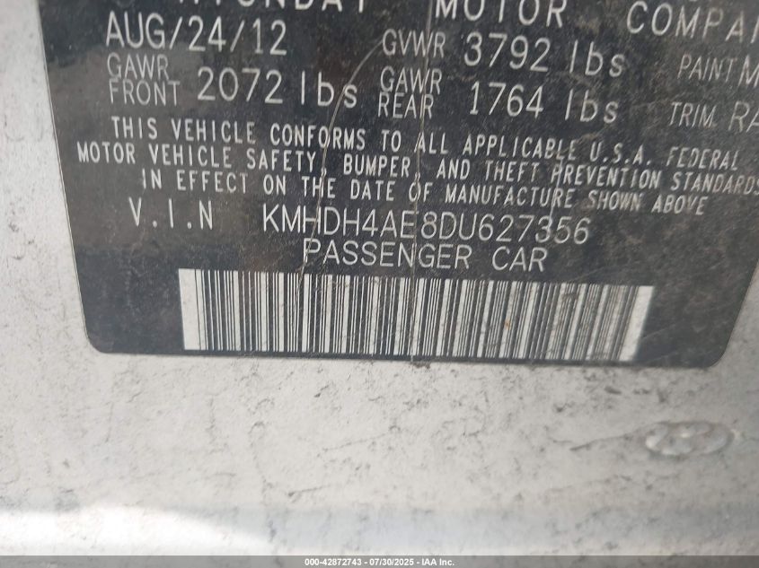 2013 HYUNDAI ELANTRA - KMHDH4AE8DU627356, колір - Срібний, 1.8, Бензин, Передній привід із США
