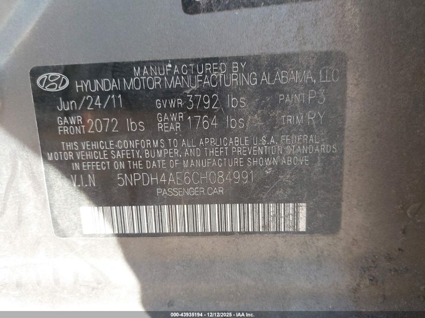2012 HYUNDAI ELANTRA - 5NPDH4AE6CH084991, колір - Сірий, 1.8, Бензин, Передній привід із США