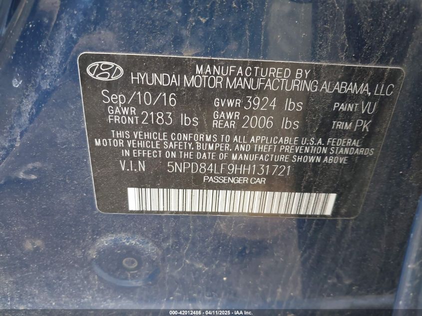 2017 HYUNDAI ELANTRA - 5NPD84LF9HH131721, колір - Синій, 2.0, Бензин, Передній привід із США