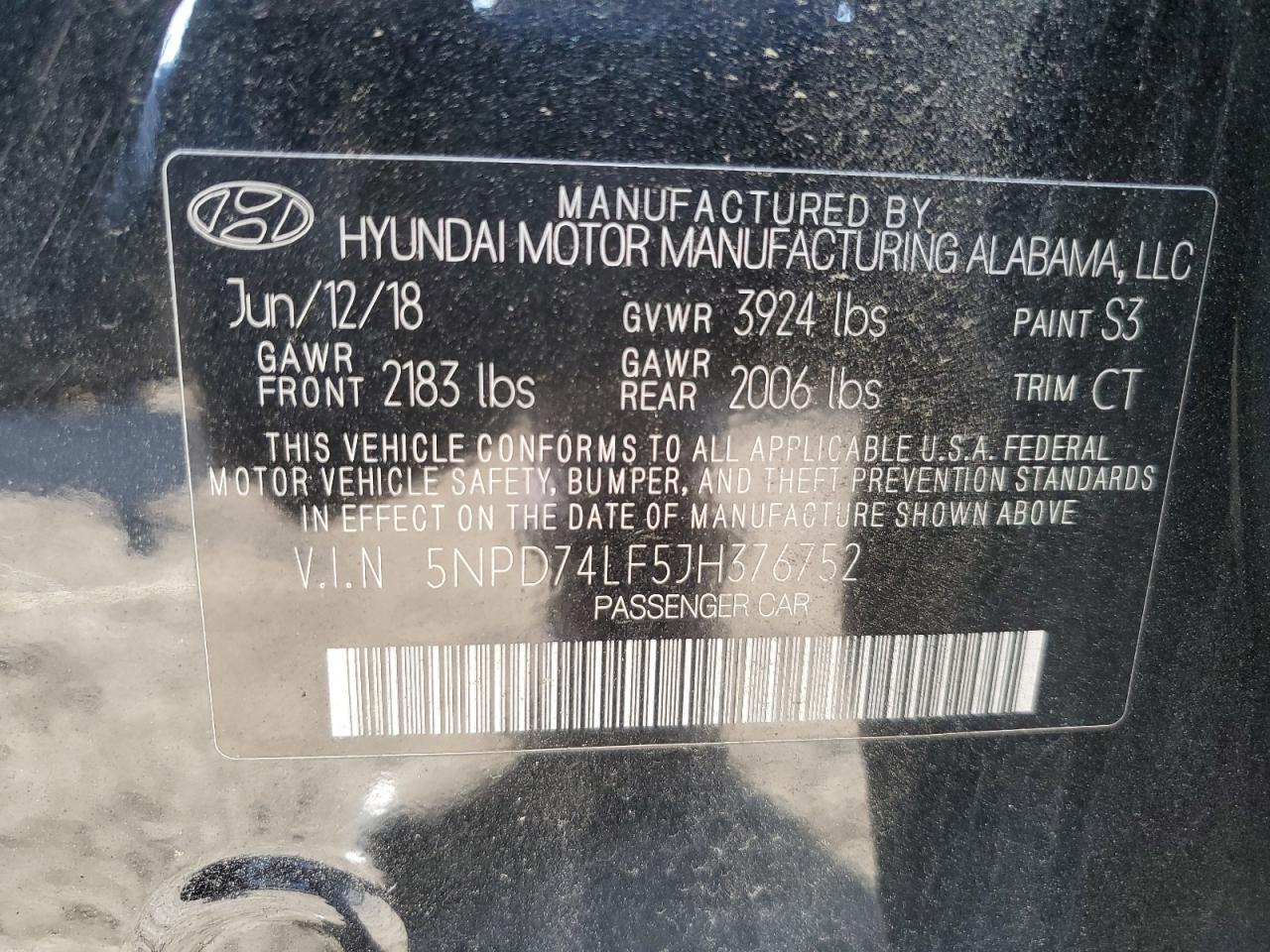 2018 HYUNDAI ELANTRA - 5NPD74LF5JH376752, колір - Чорний, 2.0, Бензин, із США