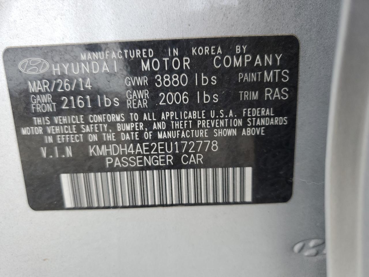 2014 HYUNDAI ELANTRA - KMHDH4AE2EU172778, колір - Срібний, 1.8, Бензин, із США