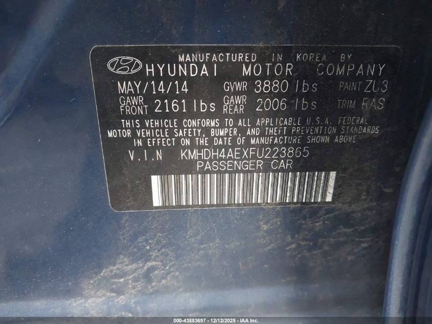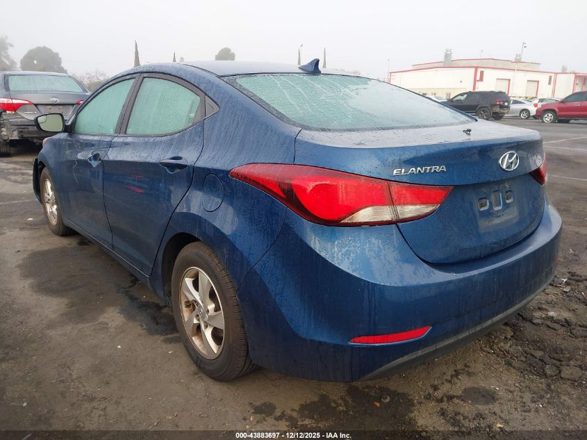 2015 HYUNDAI ELANTRA - KMHDH4AEXFU223865, колір - Синій, 1.8, Бензин, Передній привід із США