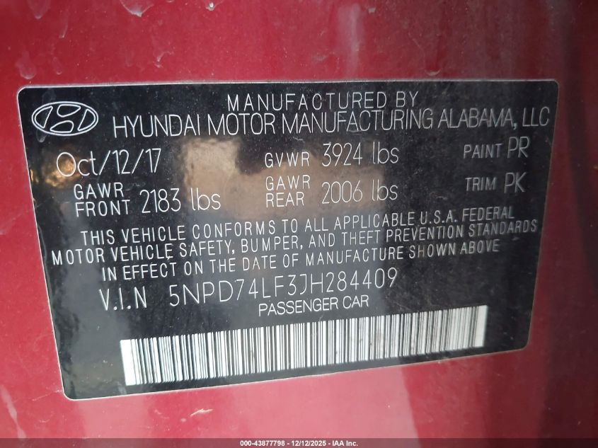 2018 HYUNDAI ELANTRA - 5NPD74LF3JH284409, колір - Червоний, 2.0, Бензин, Передній привід із США