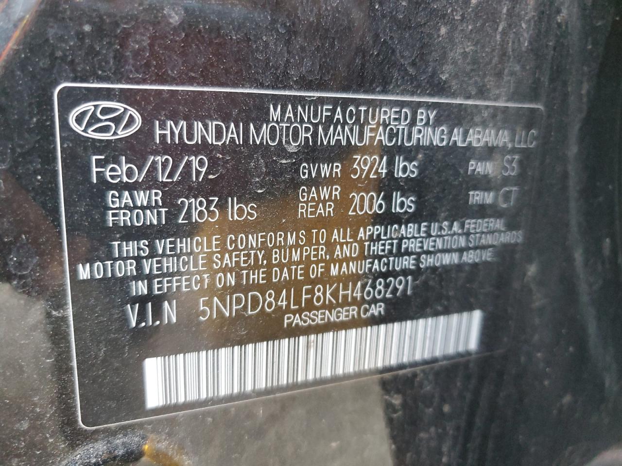 Колір ЧорнийЦиліндри 4VIN 5NPD84LF8KH468291Стан НевідомоУшкодження Вода