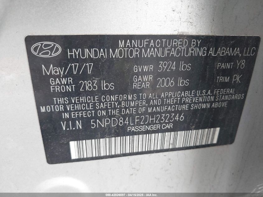 2018 HYUNDAI ELANTRA - 5NPD84LF2JH232346, колір - Сірий, 2.0, Бензин, Передній привід із США