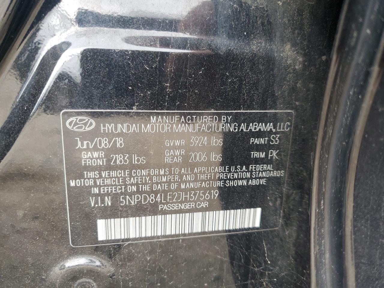 Колір ЧорнийЦиліндри 4VIN 5NPD84LF2JH375619Стан НевідомоУшкодження НезначніДата аукціона 2025-10-09