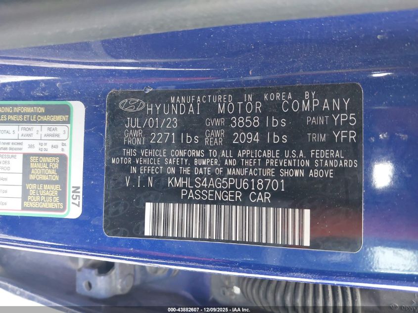 2023 HYUNDAI ELANTRA - KMHLS4AG5PU618701, колір - Синій, 2.0, Бензин, Передній привід із США