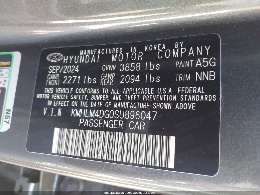 2025 HYUNDAI ELANTRA - KMHLM4DG0SU896047, колір - Чорний, 2.0, Бензин, Передній привід із США