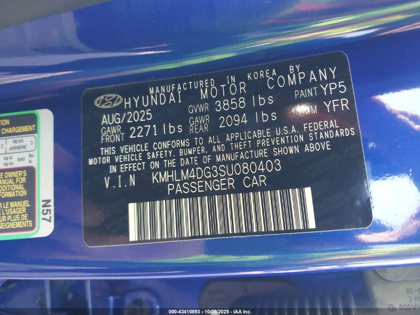 2025 HYUNDAI ELANTRA - KMHLM4DG3SU080403, колір - Синій, 2.0, Бензин, Передній привід із США