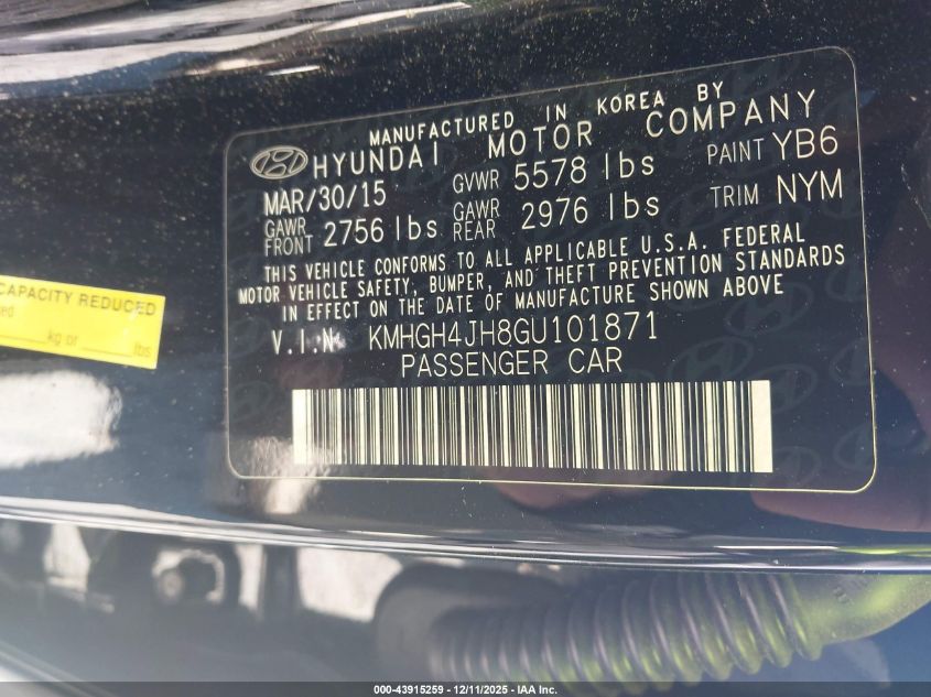 2016 HYUNDAI EQUUS SIGNATURE