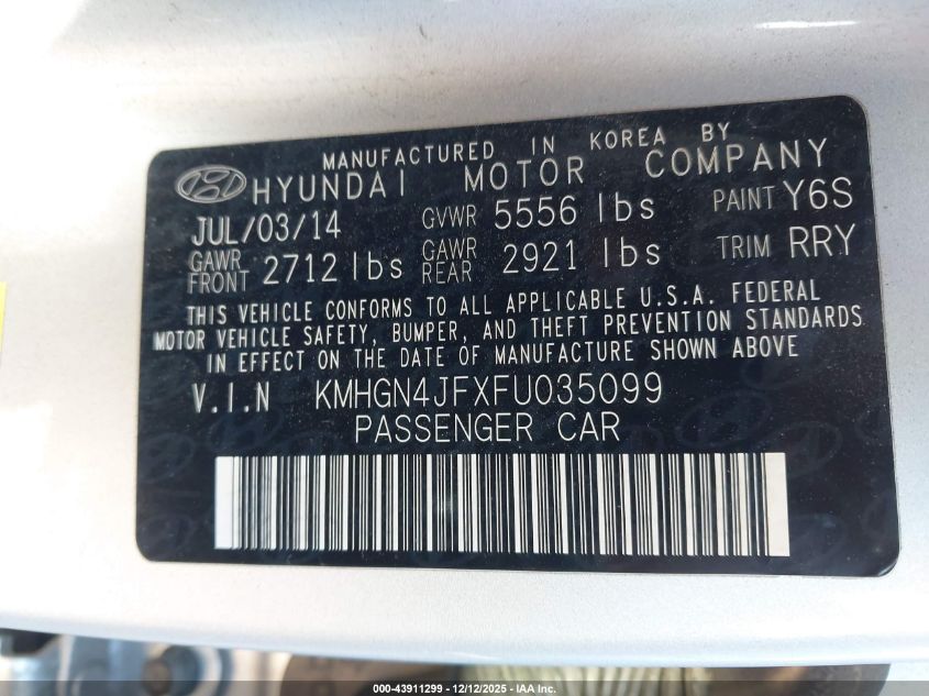 2015 HYUNDAI GENESIS - KMHGN4JFXFU035099, колір - Срібний, 5.0, Бензин, Задній привід із США