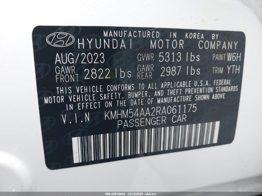 2024 HYUNDAI IONIQ 6 - KMHM54AA2RA061175, колір - Білий, 0.0, Електричний, Задній привід із США