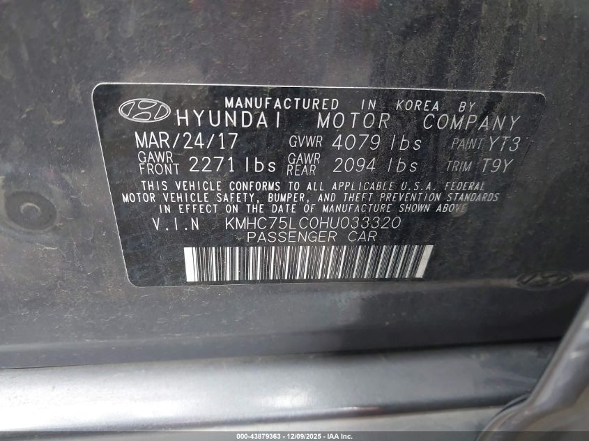 2017 HYUNDAI IONIQ - KMHC75LC0HU033320, колір - Сірий, 1.6, Гібрид, Передній привід із США