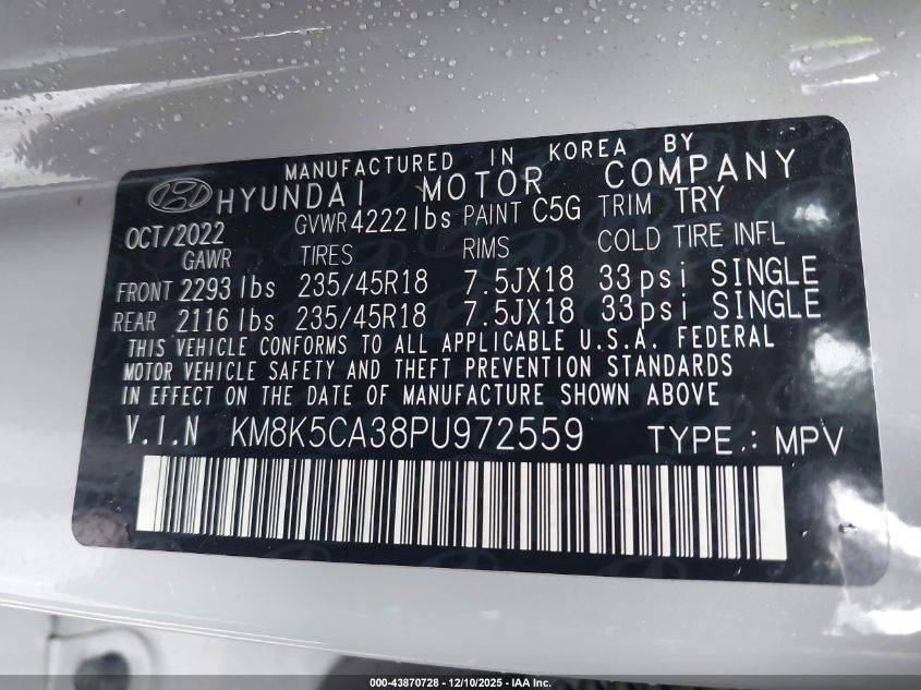 2023 HYUNDAI KONA - KM8K5CA38PU972559, колір - Сірий, 1.6, Бензин, Повний привід із США