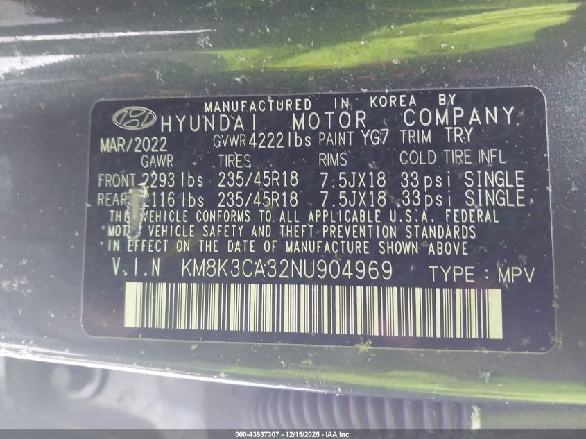 2022 HYUNDAI KONA SEL