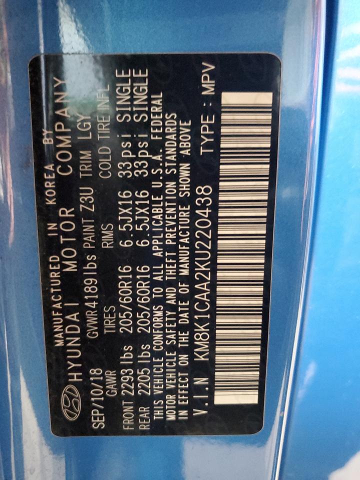 2019 HYUNDAI KONA - KM8K1CAA2KU220438, колір - Синій, 2.0, Бензин, Повний привід із США