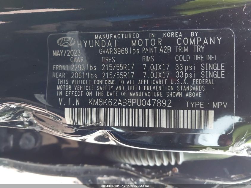 2023 HYUNDAI KONA - KM8K62AB8PU047892, колір - Чорний, 2.0, Бензин, Передній привід із США