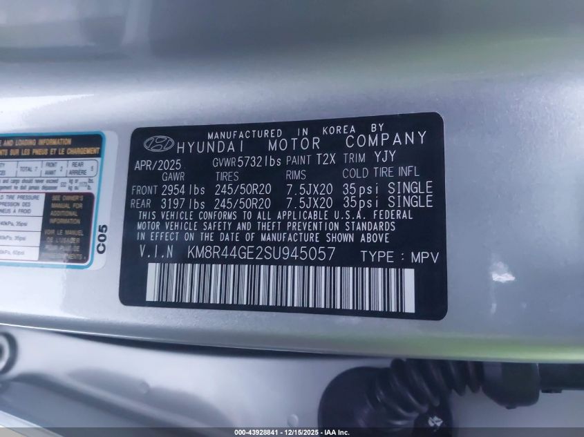 2025 HYUNDAI PALISADE - KM8R44GE2SU945057, колір - Срібний, 3.8, Бензин, Передній привід із США