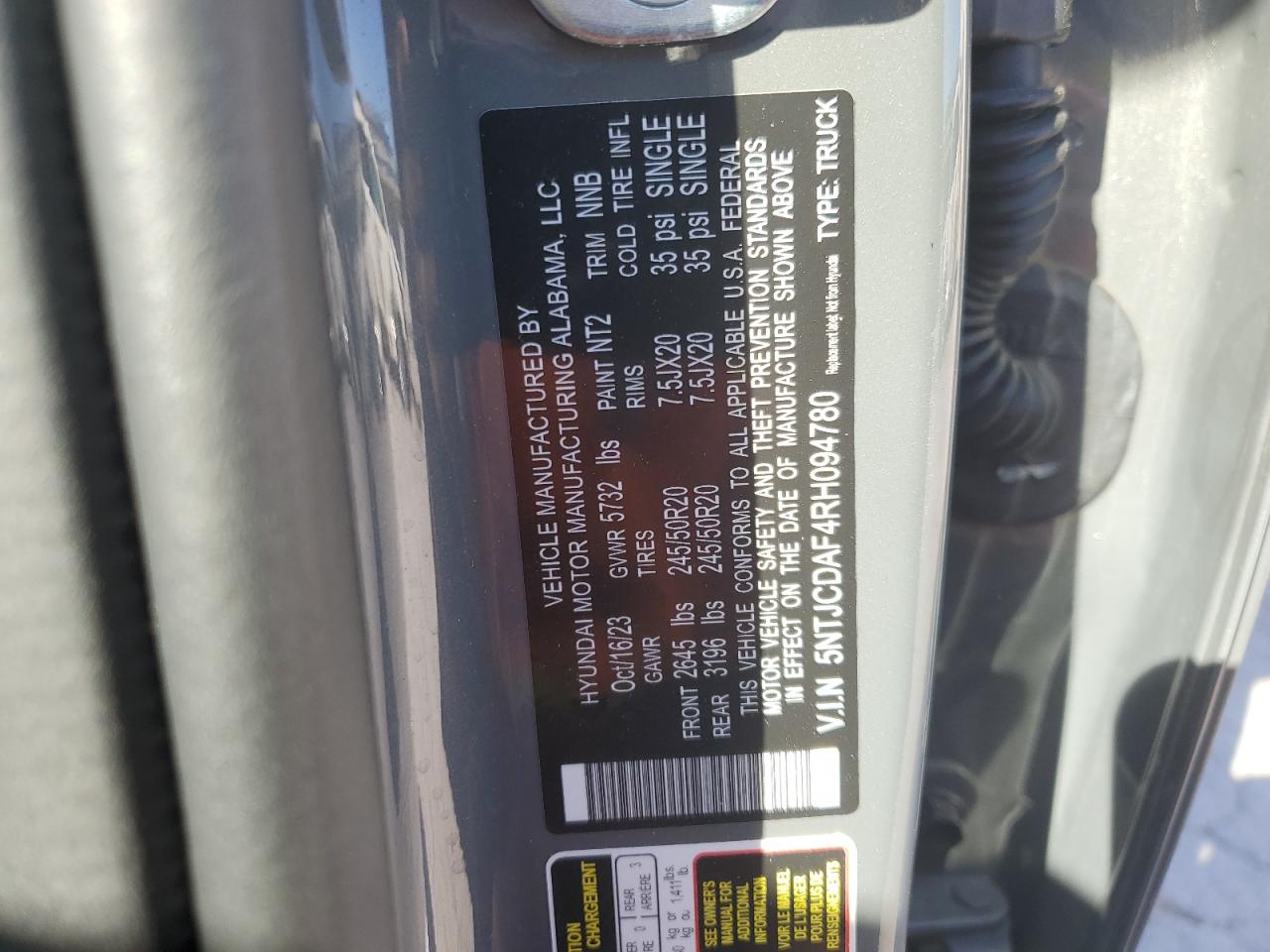 2024 HYUNDAI SANTA CRUZ - 5NTJCDAF4RH094780, колір - Сірий, 2.5, Бензин, Повний привід із США