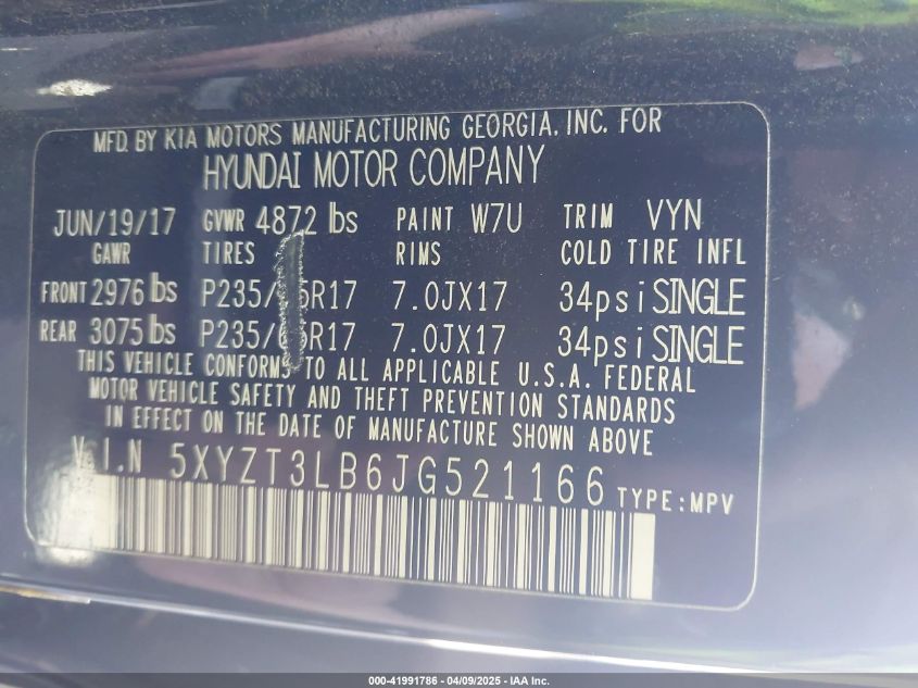 Колір СірийЦиліндри 4Привід Передній привідVIN 5XYZT3LB6JG521166Стан СтаціонарноУшкодження Передня або задня