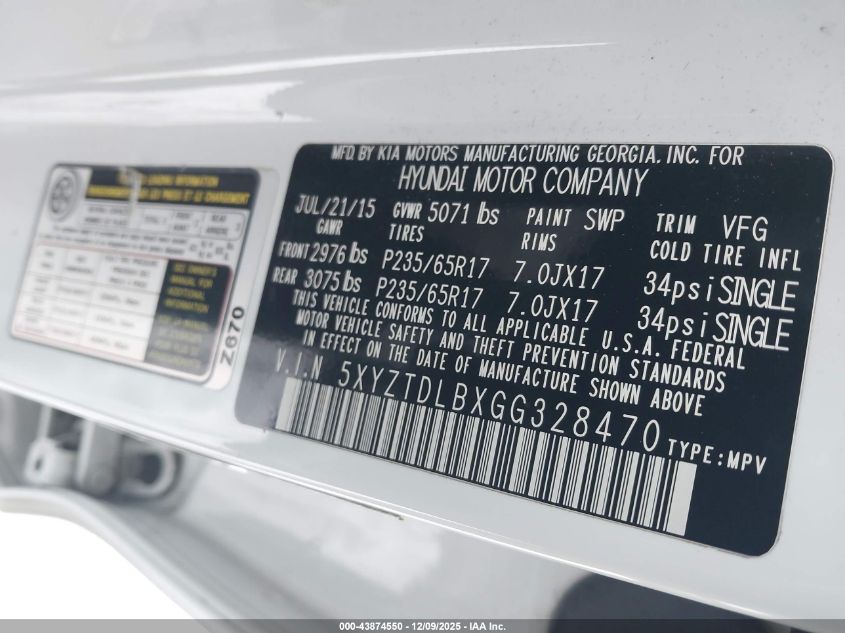 2016 HYUNDAI SANTA FE - 5XYZTDLBXGG328470, колір - Білий, 2.4, Бензин, Повний привід із США