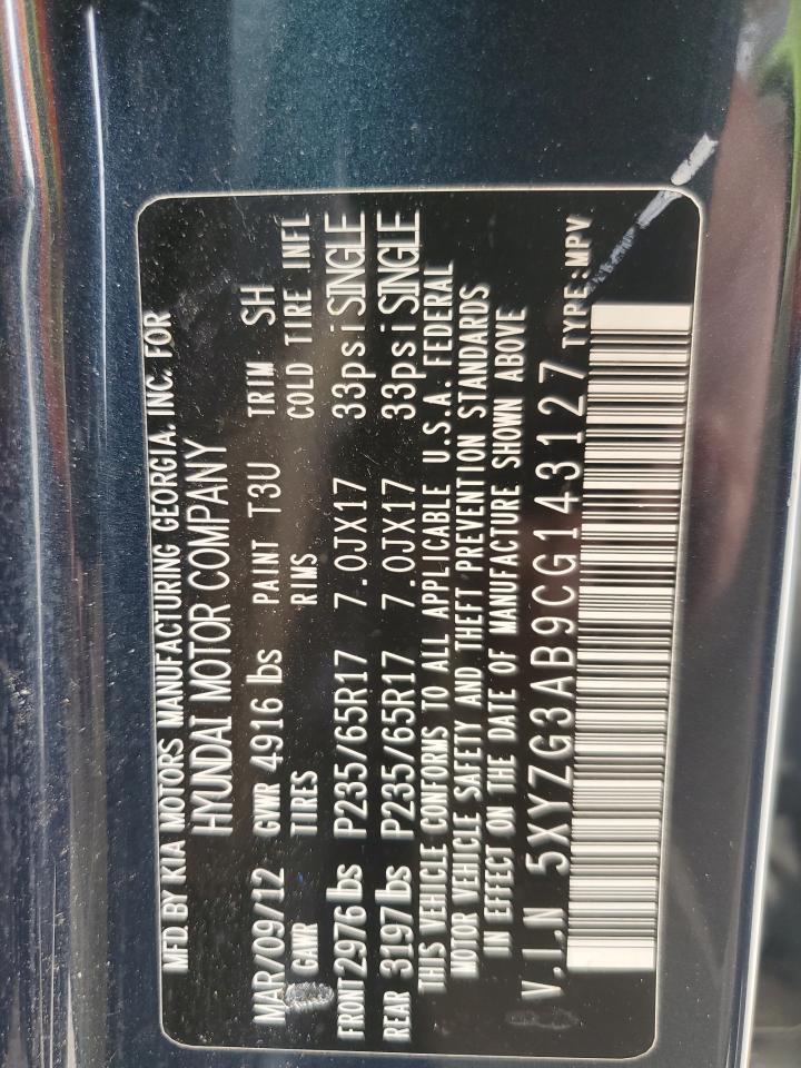 2012 HYUNDAI SANTA FE - 5XYZG3AB9CG143127, колір - Синій, 2.4, Бензин, із США
