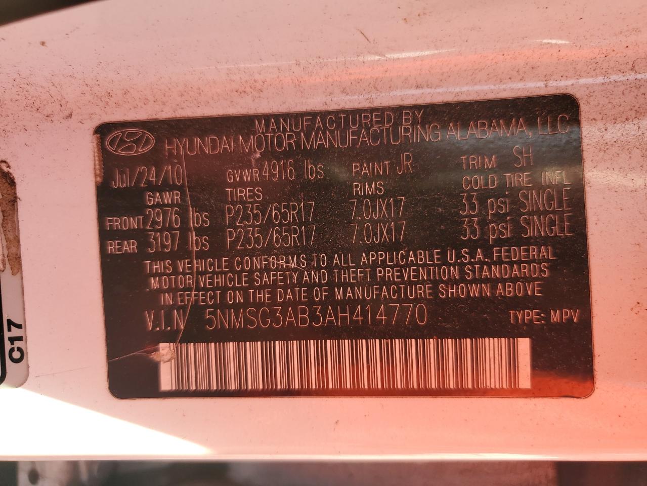 2010 HYUNDAI SANTA FE - 5NMSG3AB3AH414770, колір - Білий, 2.4, Бензин, із США