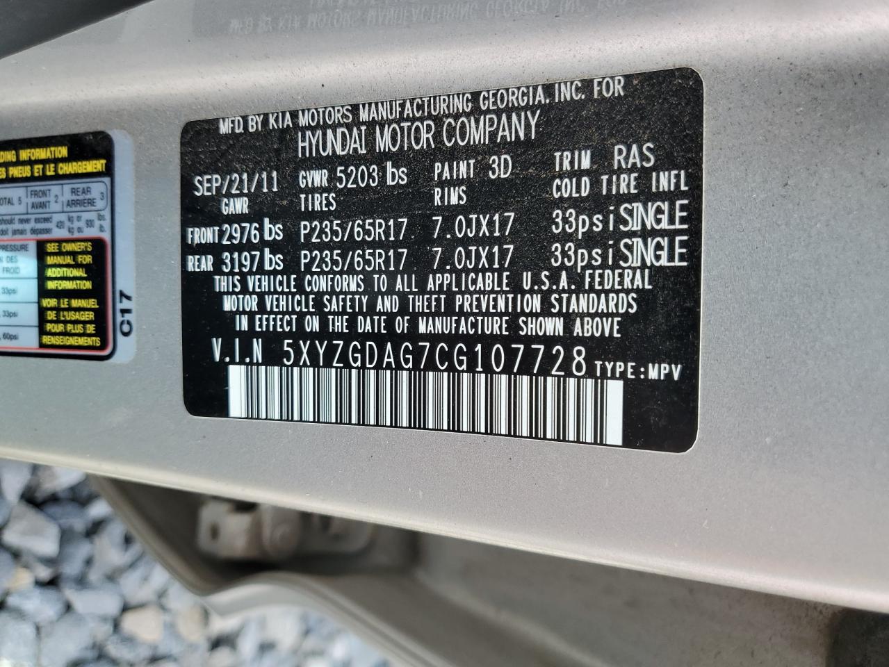 2012 HYUNDAI SANTA FE - 5XYZGDAG7CG107728, колір - Срібний, 3.5, Бензин, Повний привід із США
