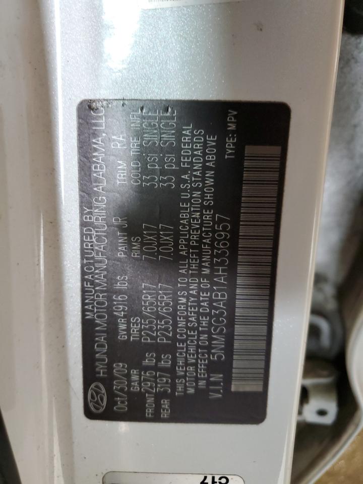 2010 HYUNDAI SANTA FE - 5NMSG3AB1AH336957, колір - Білий, 2.4, Бензин, із США