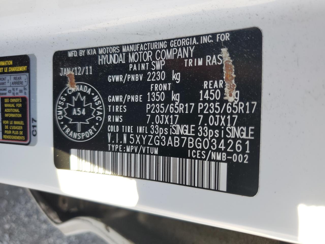 Колір БілийЦиліндри 4VIN 5XYZG3AB7BG034261Стан Заводиться та їде (перевірено)Ушкодження НезначніДата аукціона 2025-10-08