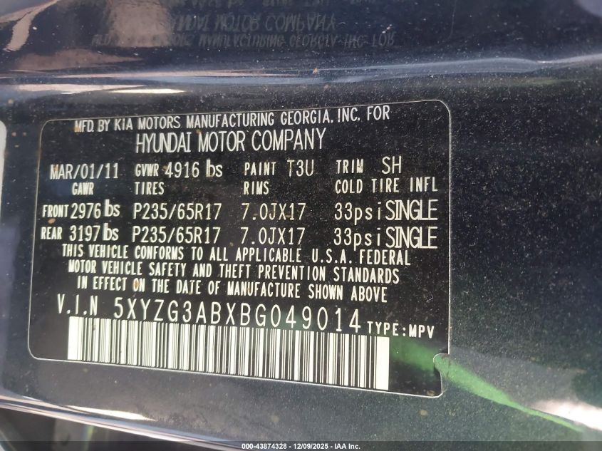 2011 HYUNDAI SANTA FE - 5XYZG3ABXBG049014, колір - Чорний, 2.4, Бензин, Передній привід із США