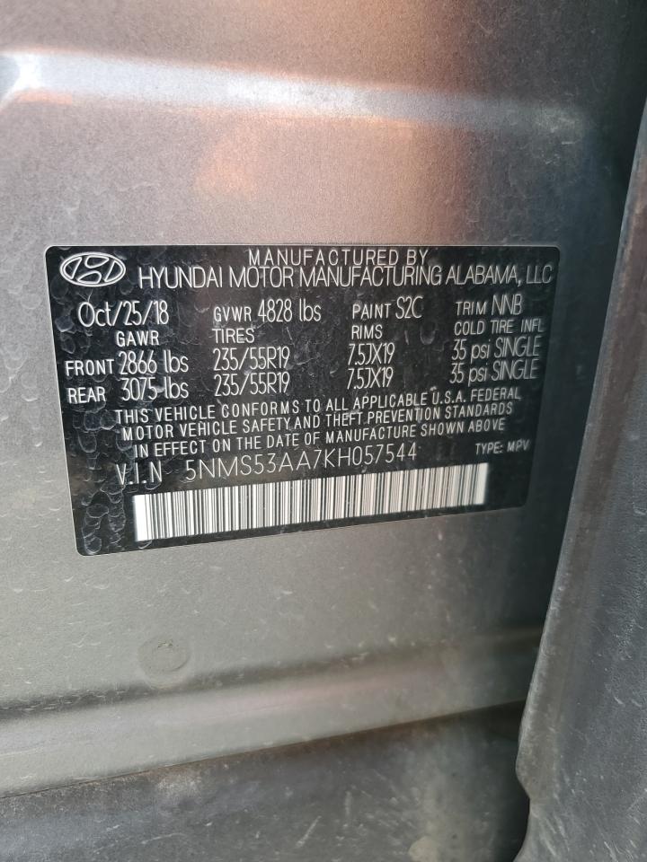 2019 HYUNDAI SANTA FE - 5NMS53AA7KH057544, колір - Срібний, 2.0, Бензин, із США
