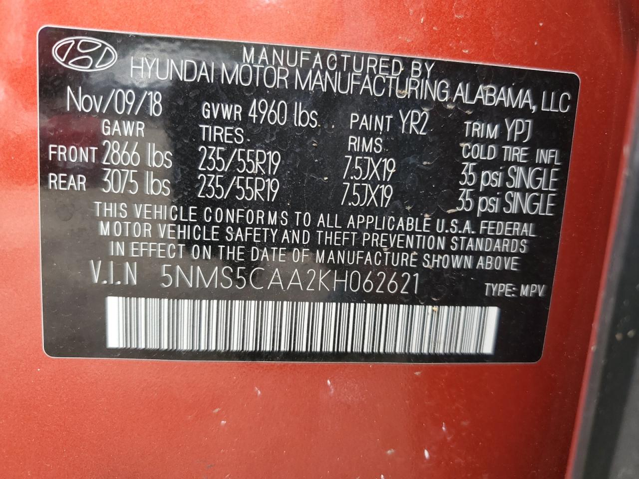 2019 HYUNDAI SANTA FE - 5NMS5CAA2KH062621, колір - Апельсиновий, 2.0, Бензин, Повний привід із США
