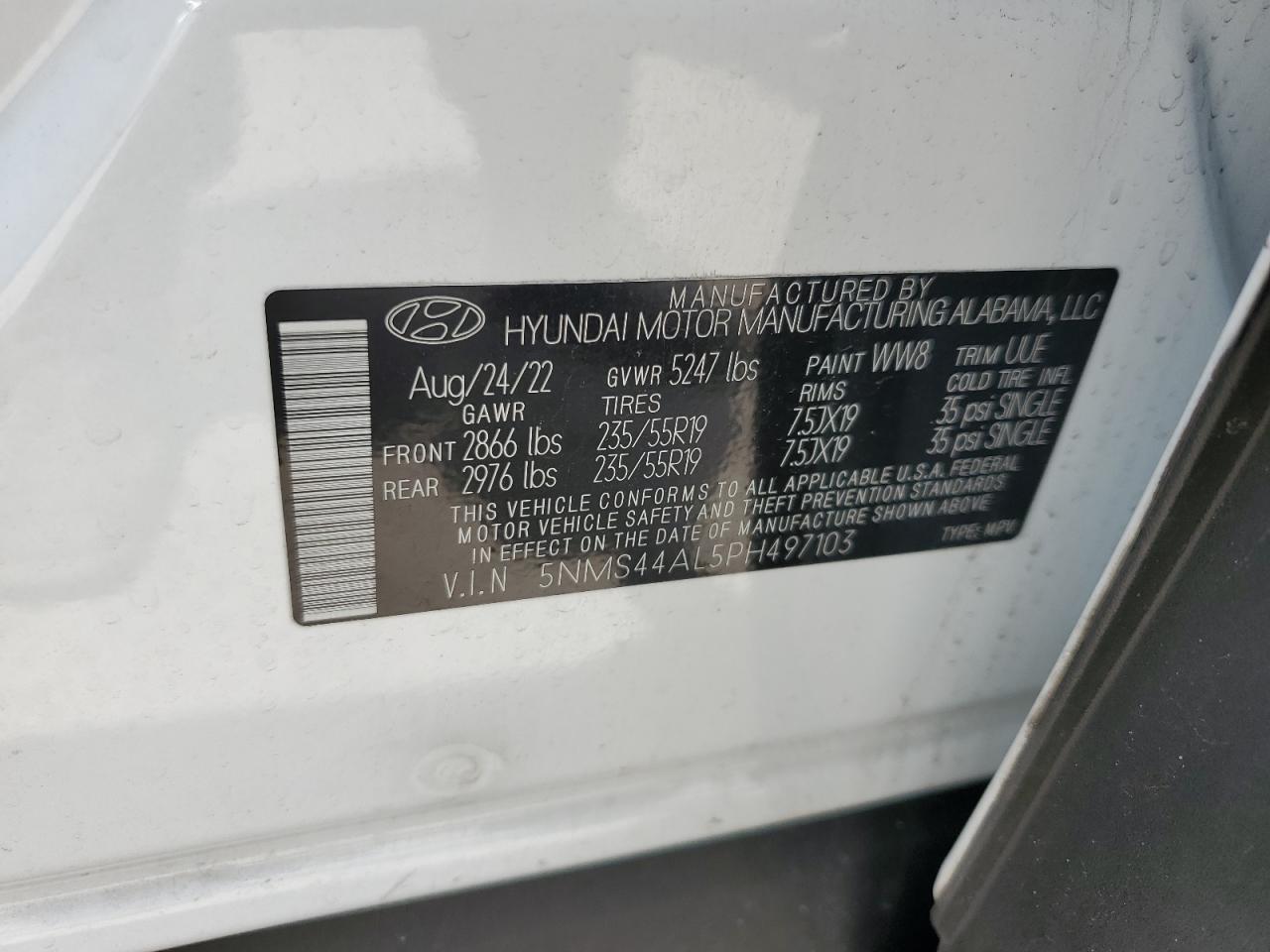 2023 HYUNDAI SANTA FE - 5NMS44AL5PH497103, колір - Білий, 2.5, Бензин, із США