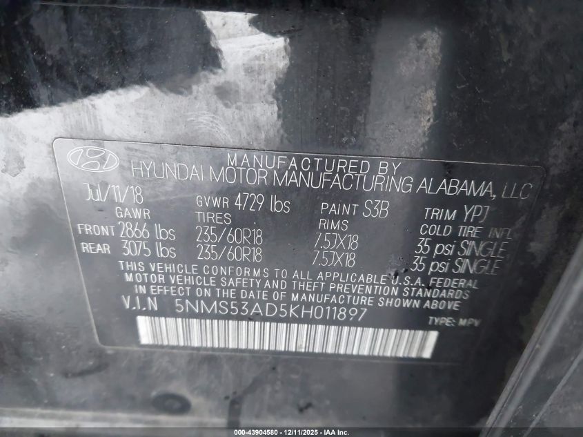 2019 HYUNDAI SANTA FE SE