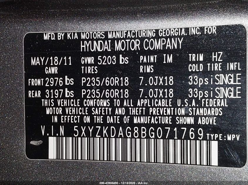 2011 HYUNDAI SANTA FE - 5XYZKDAG8BG071769, колір - Сірий, 3.5, Бензин, Повний привід із США