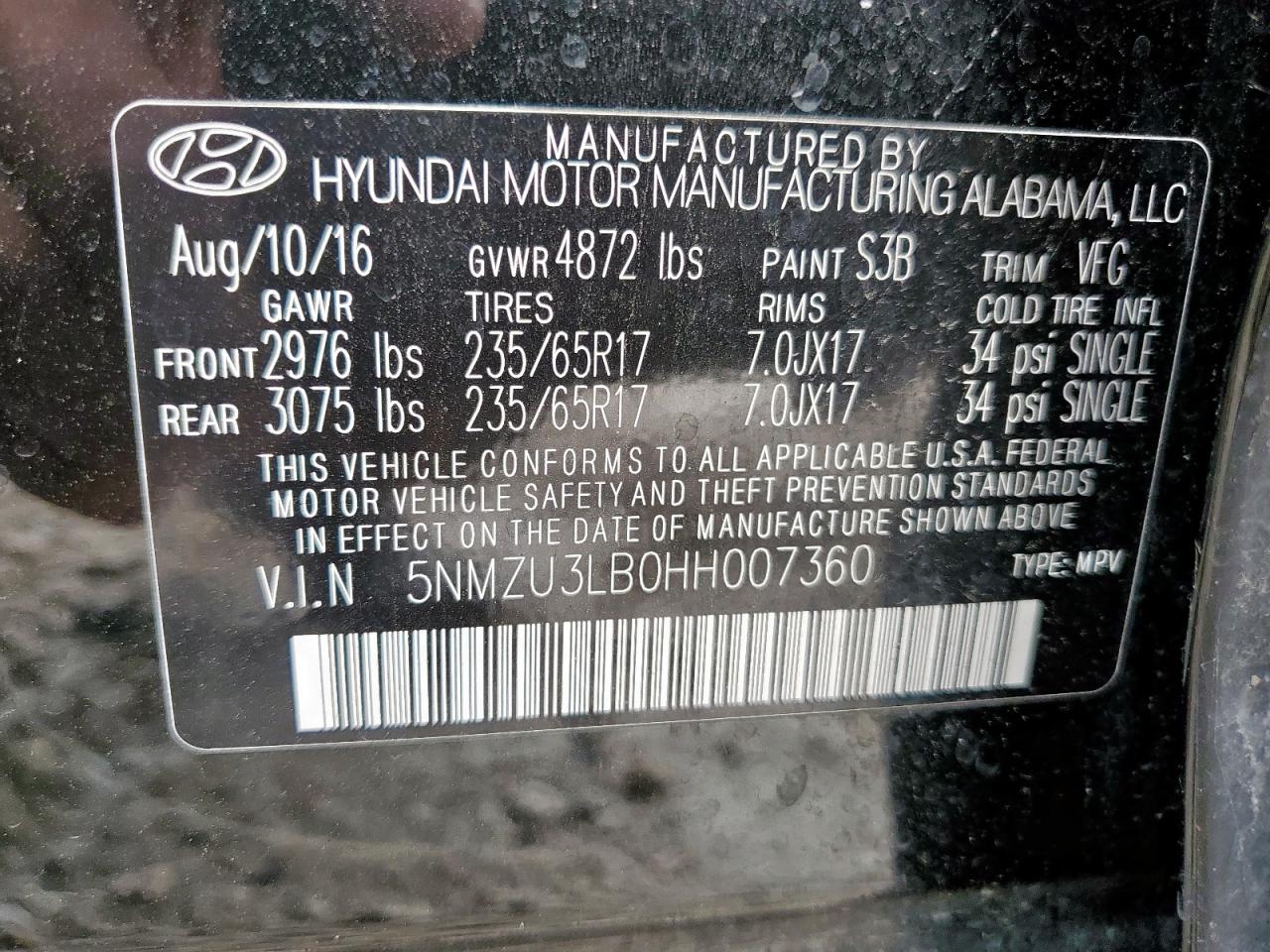 2017 HYUNDAI SANTA FE - 5NMZU3LB0HH007360, колір - Чорний, 2.4, Бензин, із США