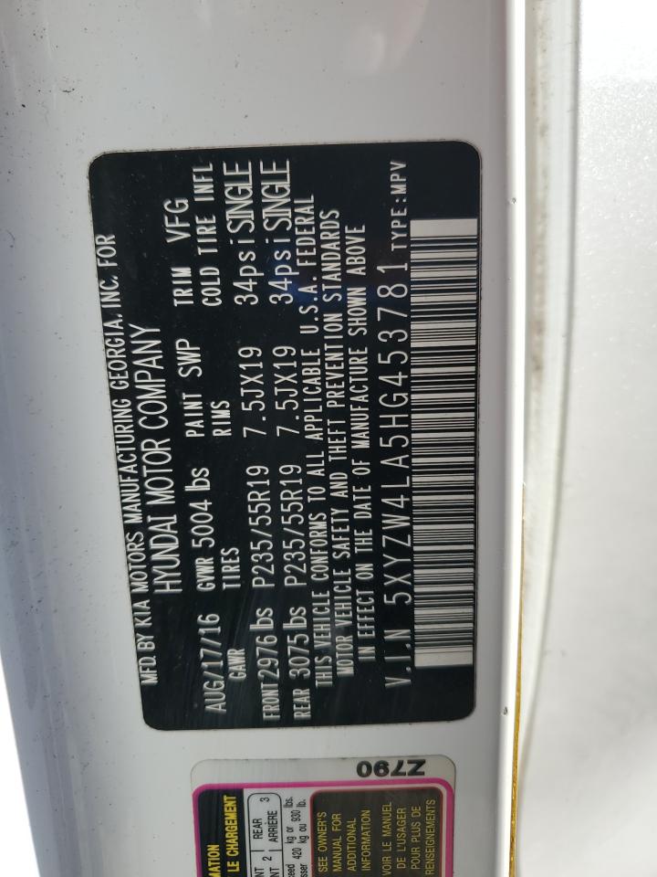 2017 HYUNDAI SANTA FE - 5XYZW4LA5HG453781, колір - Білий, 2.0, Бензин, із США