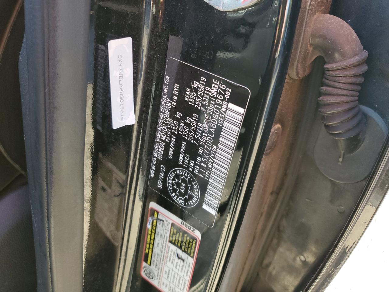 2013 HYUNDAI SANTA FE - 5XYZUDLA8DG019676, колір - Чорний, 2.0, Бензин, Повний привід із США
