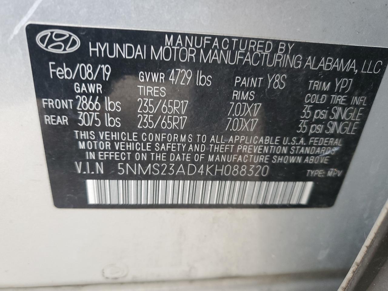 2019 HYUNDAI SANTA FE - 5NMS23AD4KH088320, колір - Срібний, 2.4, Бензин, із США