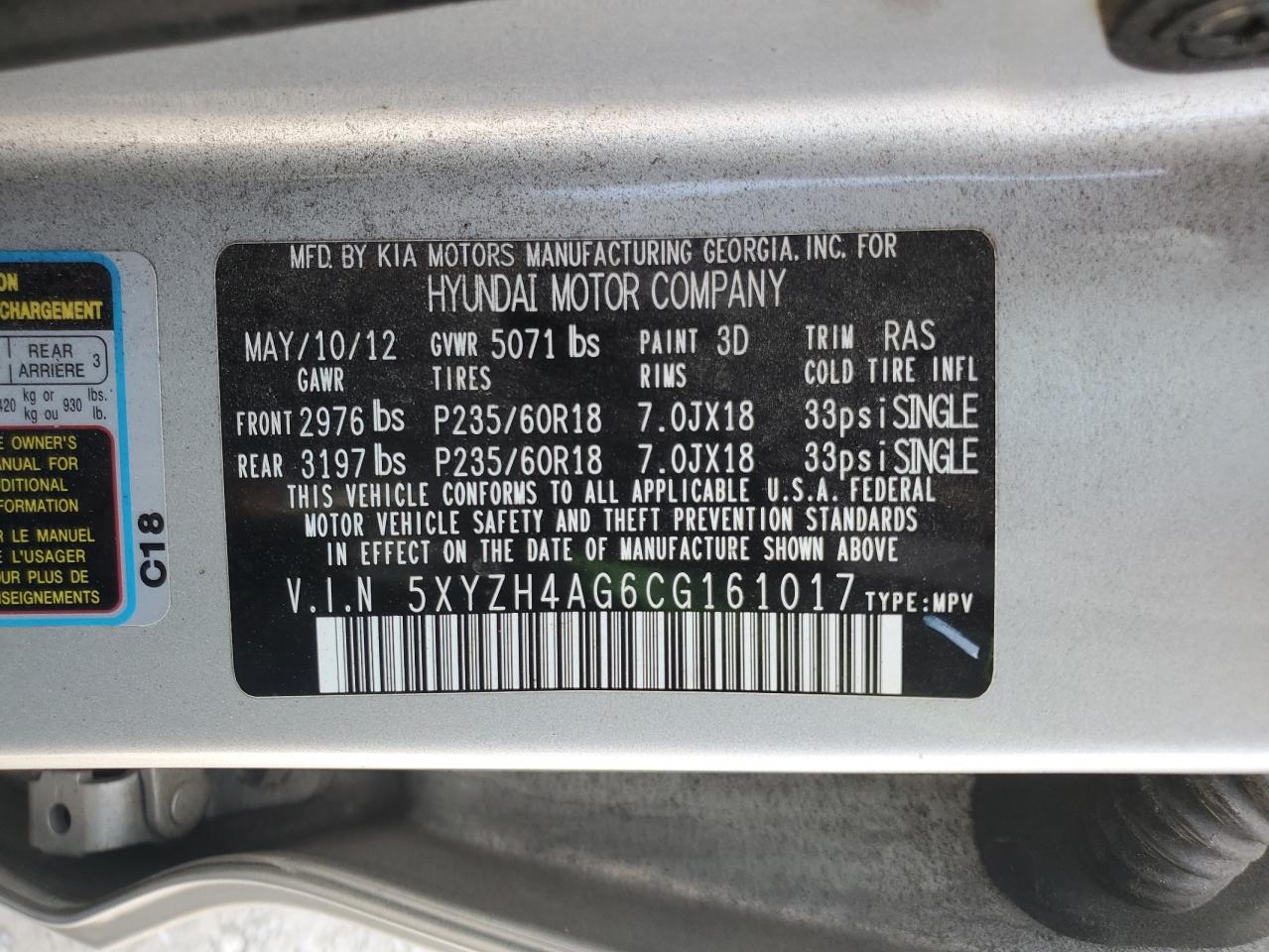 2012 HYUNDAI SANTA FE - 5XYZH4AG6CG161017, колір - Срібний, 3.5, Бензин, із США