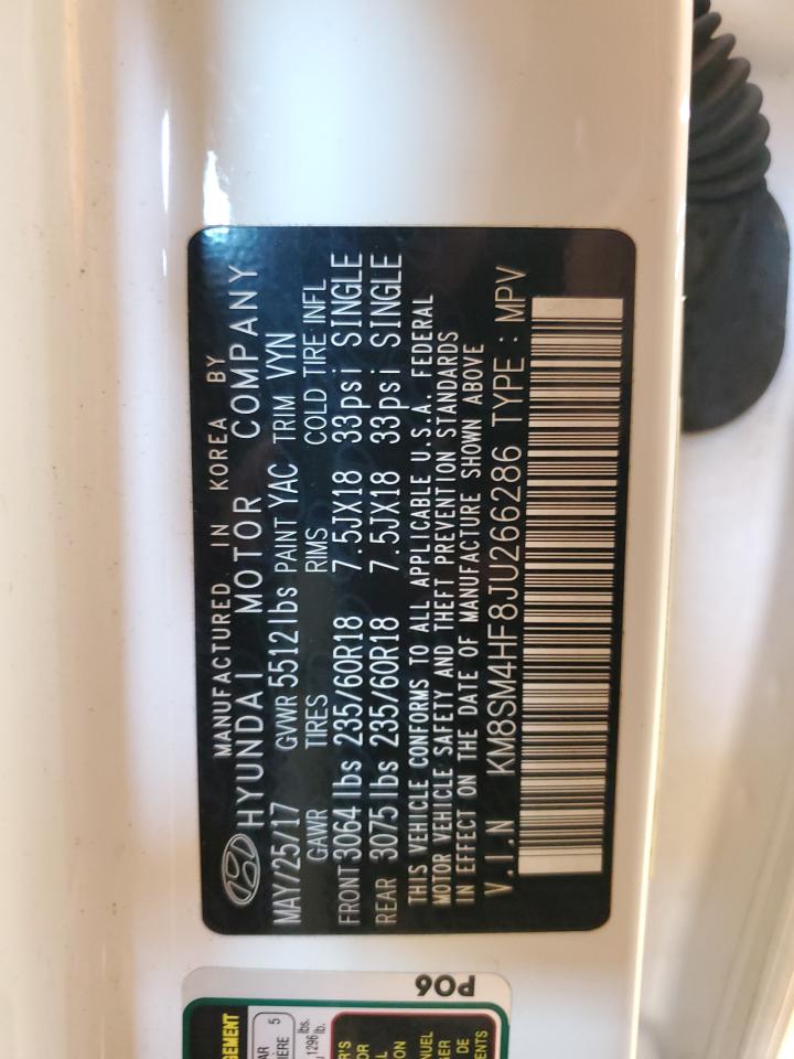 2018 HYUNDAI SANTA FE - KM8SM4HF8JU266286, колір - Білий, 3.3, Бензин, із США