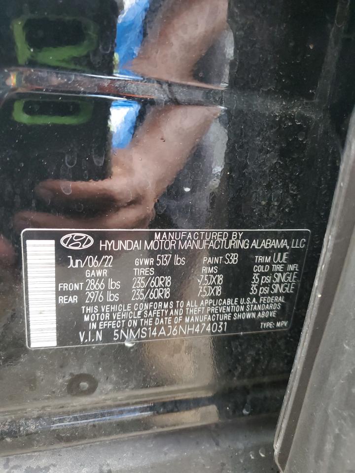 2022 HYUNDAI SANTA FE - 5NMS14AJ6NH474031, колір - Чорний, 2.5, Бензин, із США