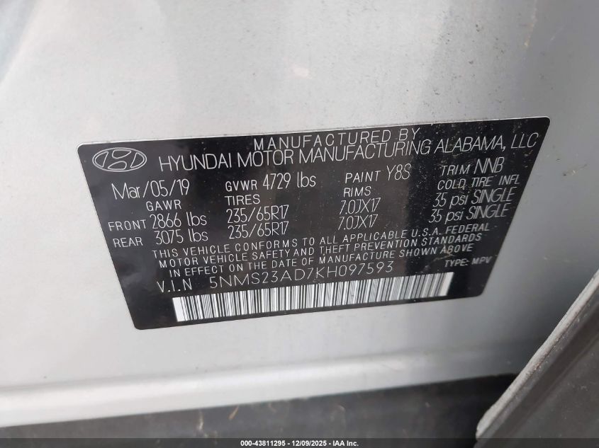 2019 HYUNDAI SANTA FE SE