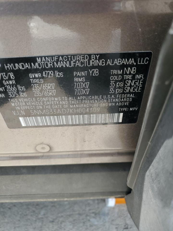 2019 HYUNDAI SANTA FE - 5NMS33AD7KH004309, колір - Загар, 2.4, Бензин, із США